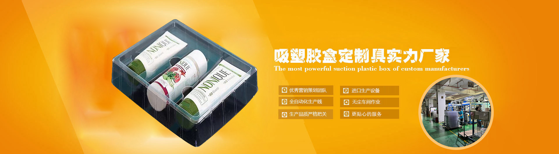 深圳市奮達(dá)康塑膠制品有限公司:成立于2006年,工廠占地面積3000余㎡,座落位于深圳市寶安區(qū)沙井街道新橋崗仔大街132號(hào)第10棟,工廠環(huán)境優(yōu)美、交通十分便利。本公司為一般納稅人企業(yè),可開(kāi)具17%增值稅票;并在公司全體員工共同努力下順利通過(guò)ISO9001-2015標(biāo)準(zhǔn)質(zhì)量管理體系。 公司經(jīng)過(guò)多年來(lái)的發(fā)展壯大已經(jīng)成為一家以吸塑、膠盒兩大類包裝產(chǎn)品的綜合型生產(chǎn)廠家。以PVC、APET、PETG、PS、PP等各種環(huán)保原材料為客戶設(shè)計(jì)、制造出精美、大方、環(huán)保的吸塑產(chǎn)品及柯式印刷、絲印、燙金、燙銀膠盒等產(chǎn)品;產(chǎn)品廣泛應(yīng)用于五金、電子、日用品、醫(yī)藥、保健品、化妝品、文具、玩具、禮品、食品等各大…